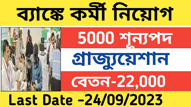 রাজ্যে ব্যাঙ্কে 5000 শূন্যপদে কর্মী নিয়োগ । কিভাবে আবেদন করতে সমস্ত টা নিচে আলোচনা কর…